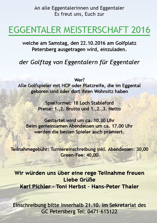 Alla gara sono invitati tutti i giocatori che sono nati o residenti in Val D’Ega.